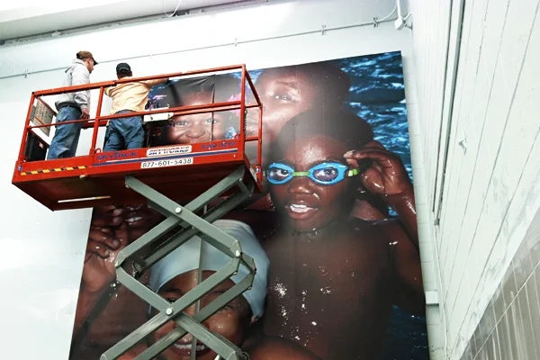 To prominently display a lifestyle image of the children enrolled at the Boys and Girls Club of Newark. The wall mural would be permanently installed onto a focal wall at the Club’s newly built swimming complex.